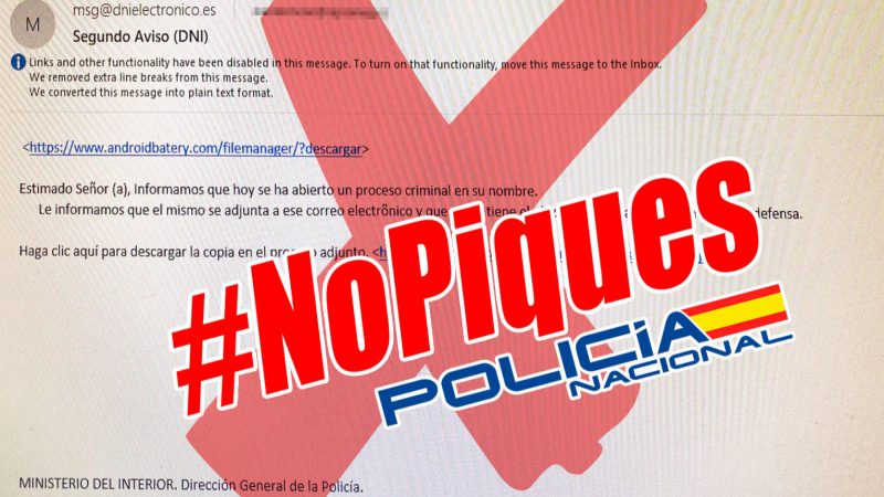 Tampoco se ha librado la Dirección General de Tráfico (DGT). En este caso, se trata de una falsa notificación sobre el pago pendiente de multas de tráfico. La DGT recomienda que se elimine directamente el mensaje sin pinchar en ningún link puesto que nunca reclaman el pago de una sanción a través de estos canales.
