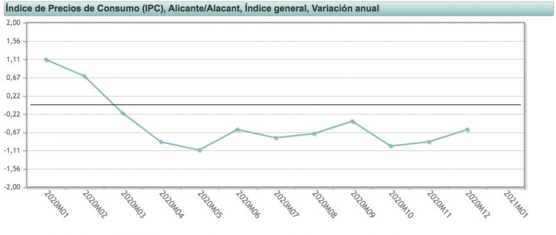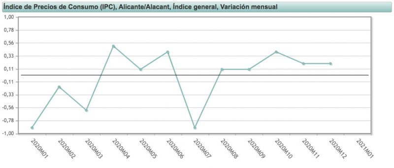 Variación anual del IPC en la provincia de Alicante. Enero 2020-2021. Fuente: INE