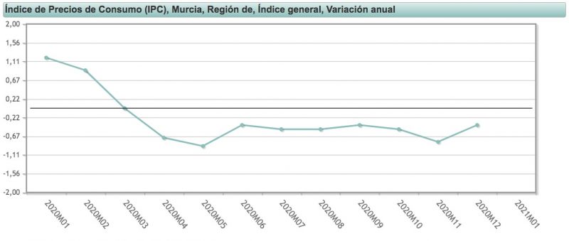 Variación del IPC anual en la Región de Murcia. Enero 2020-2021. Fuente: INE