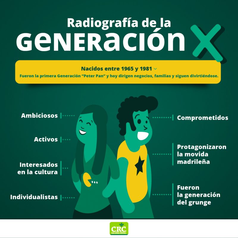 En todo el abanico de generaciones que pueblan el mundo desde el siglo XX, nos encontramos con una especialmente atrevida y activa: la generación X o Peter Pan, nacidos entre 1965 y 1981. Sus miembros, amantes de la tecnología y del trabajo e hijos de la generación Baby Boomer, comparten muchos acontecimientos históricos, como la Guerra Fría o la movida madrileña. El género musical que mejor puede adecuarse a su personalidad es el del Grunge, capitaneado por Kurt Cobain, que encaja perfectamente con su espíritu inconformista y ambicioso. Además, los hombres y mujeres de esta generación tienen un gran manejo de la tecnología, que utilizan para compartir sus pensamientos con el mundo continuamente. Hay otro rasgo que los caracteriza: vivieron el paso de la Transición a la democracia, con todas las reivindicaciones políticas y sociales que conllevó para los españoles. ¿Te animas a descubrir a la generación X?