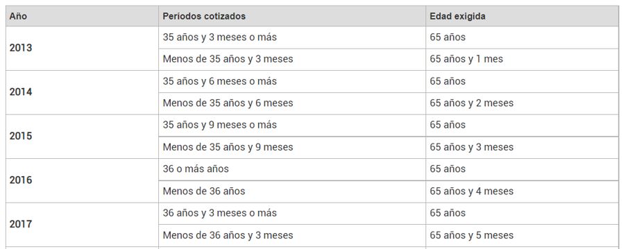 - Disponer de un período mínimo de 15 años cotizados. Dos años de este total deben ser cotizados dentro de los 15 años anteriores al momento de la jubilación.
