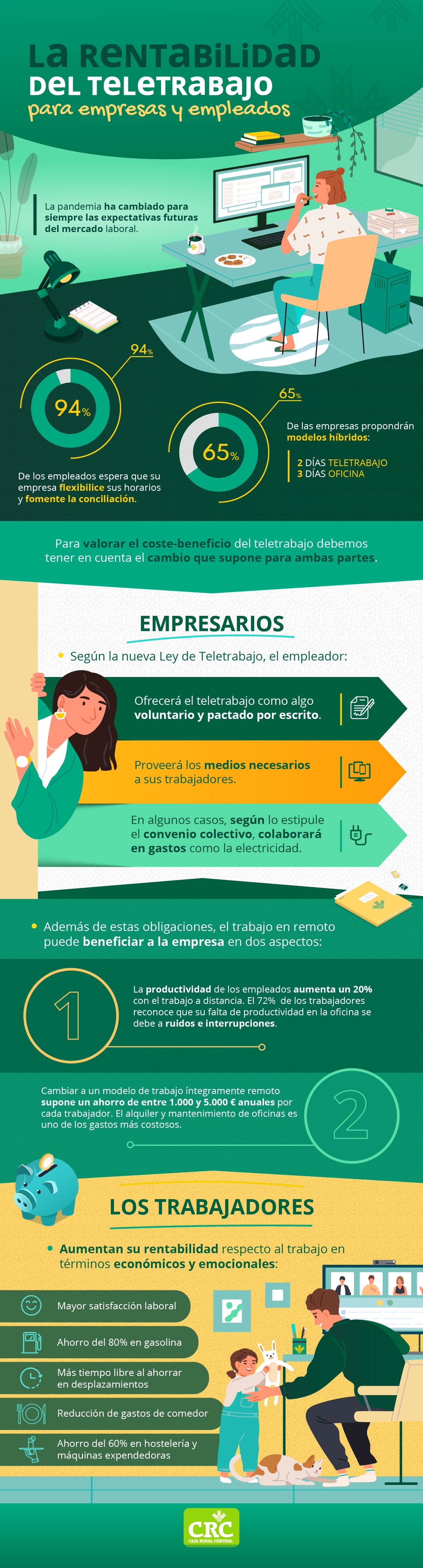 Por una parte, desde el punto de vista del empresario, hay que pensar en términos de rentabilidad. Los datos de una investigación realizada por Effiwork arrojan luz sobre el asunto: el ahorro por trabajador puede alcanzar los 5.000€ anuales, aunque se deberá tener en cuenta el convenio colectivo de cada sector para restar el gasto en equipamiento e incluso luz.