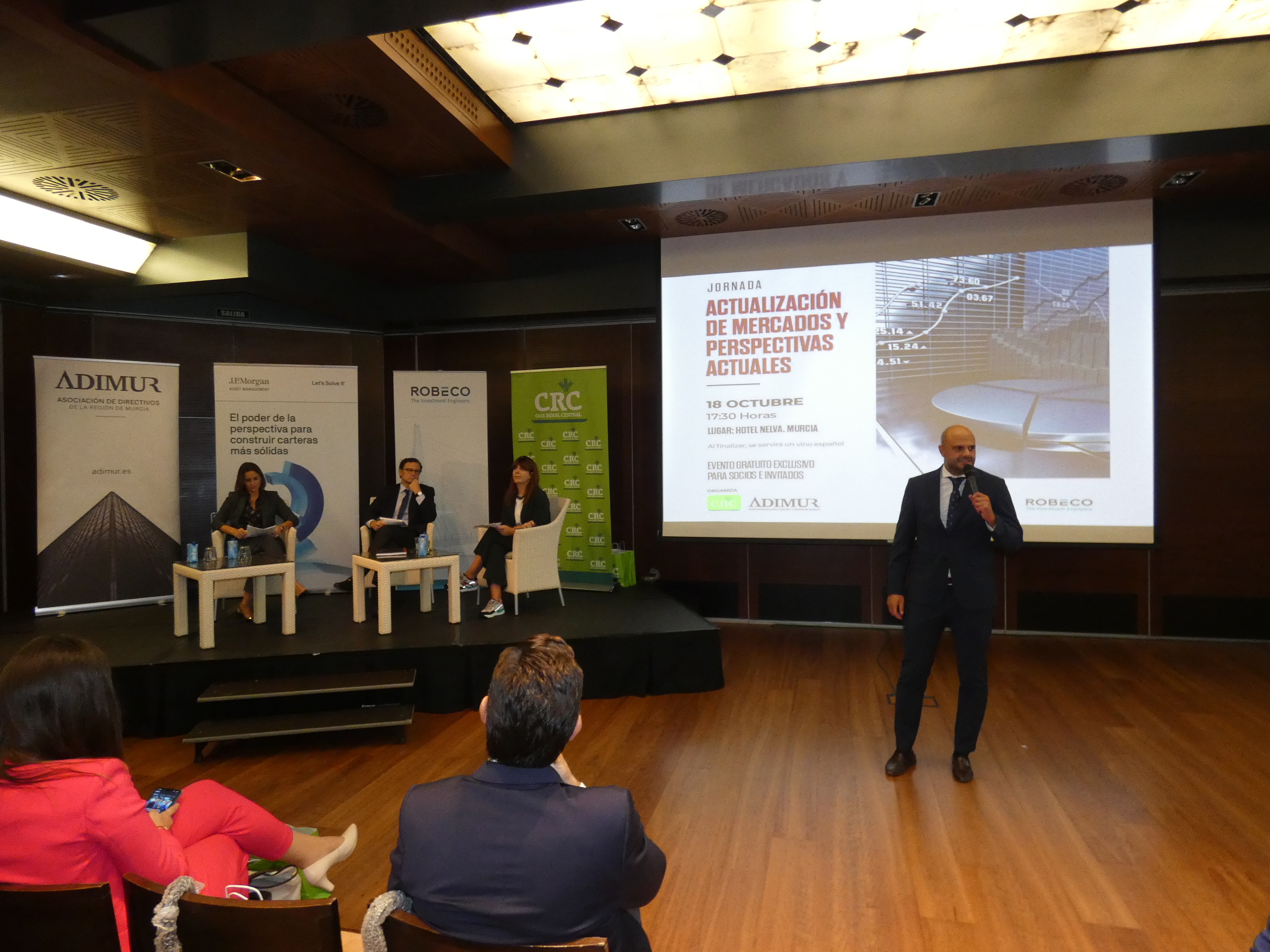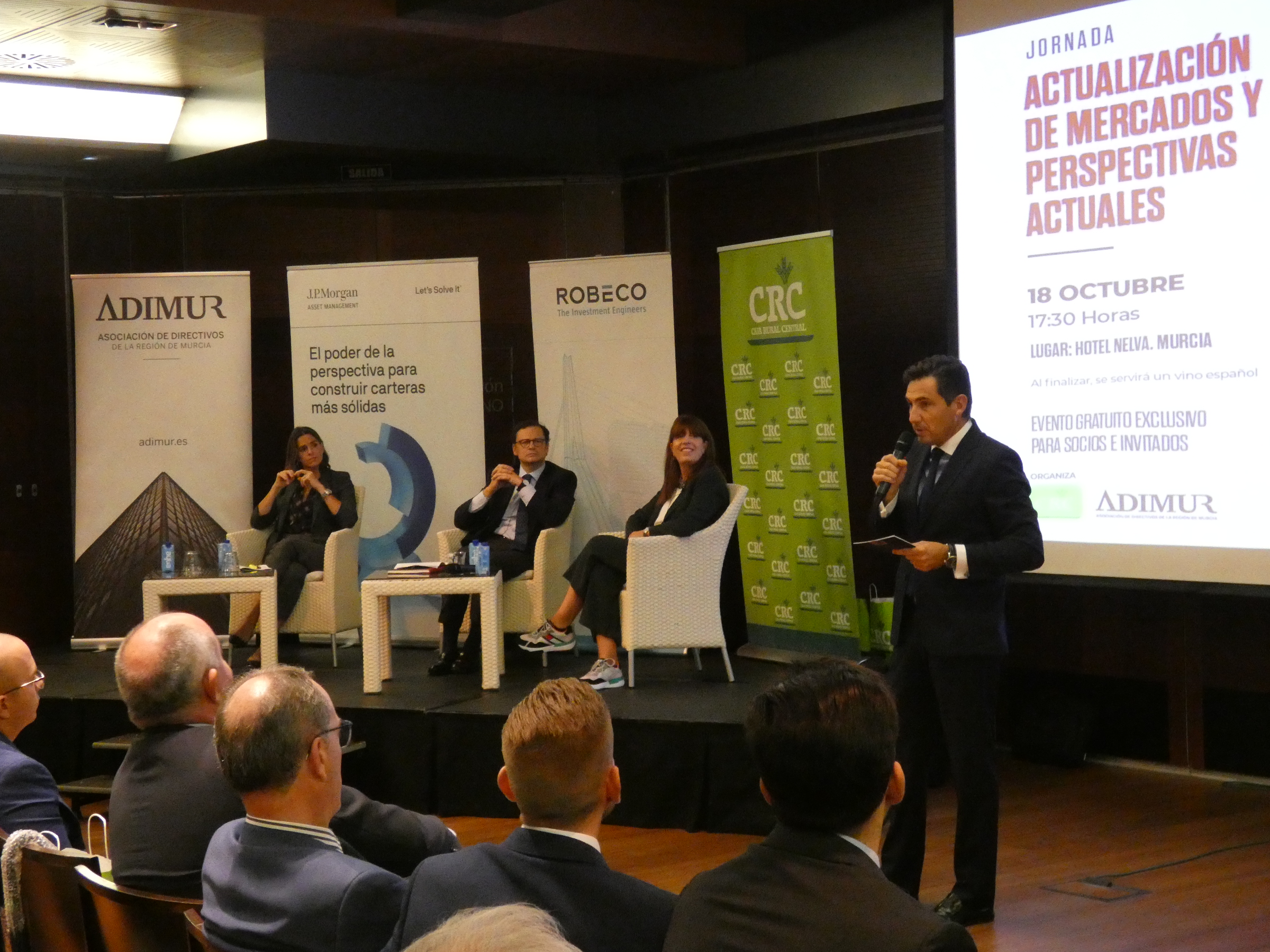 Encuentro de Banca Privada en el que se analizaron las previsiones económicas para afrontar con éxito el contexto actual. La jornada organizada por ADIMUR y CRC, celebrada en Murcia ofreció a los asistentes las diferentes soluciones de inversión para tomar decisiones en el corto y medio plazo.